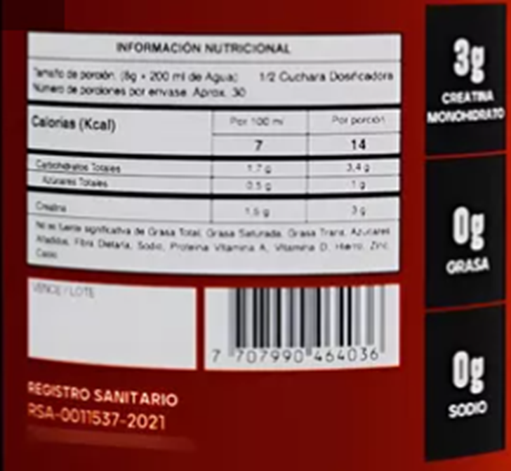 Creatina por servicio: 3g